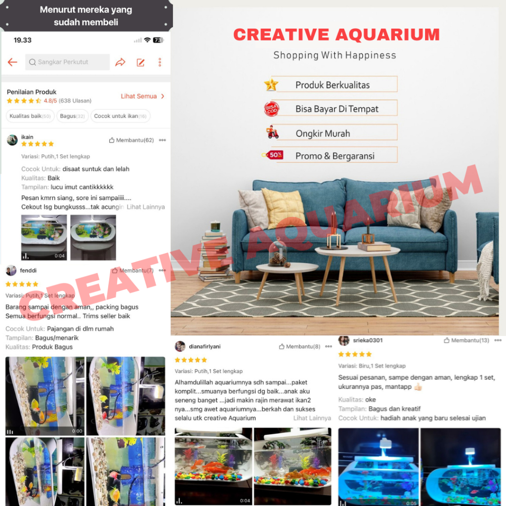 Aquarium full set / aquarium mini akrilik lengkap dengan pompa dan Mesin filter dan aksesoris lampu LED (AB