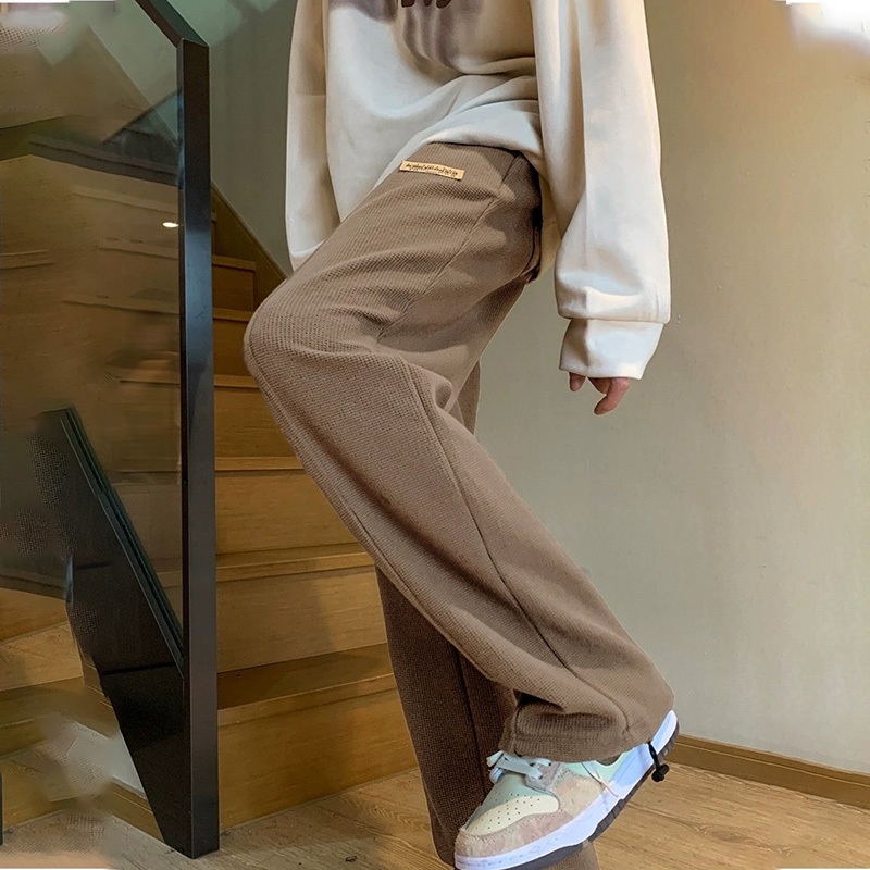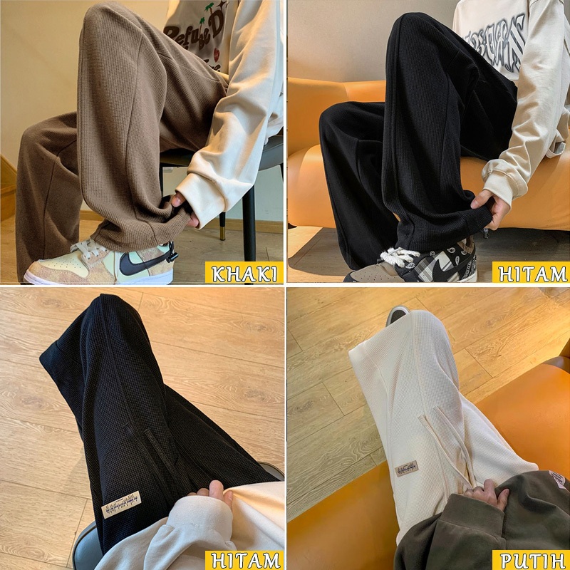 Celana Kulot Waffle Pinggang Karet Wide Leg Cullote Putih celana longgar pria murah celana panjang pria kasual gaya kore
