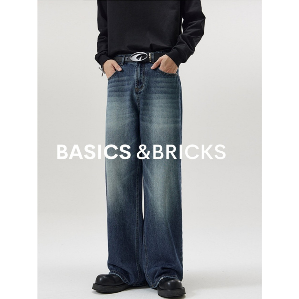 BASICS&BRICKS | Celana Jeans Pria Loose Fit Darkblue - Baggy Jeans Streetwear - K9050