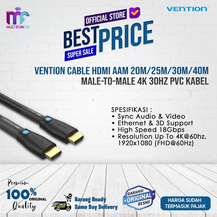VENTION CABLE HDMI AAM 20M/25M/30M/40M MALE-TO-MALE 4K 30HZ PVC KABEL - 20M