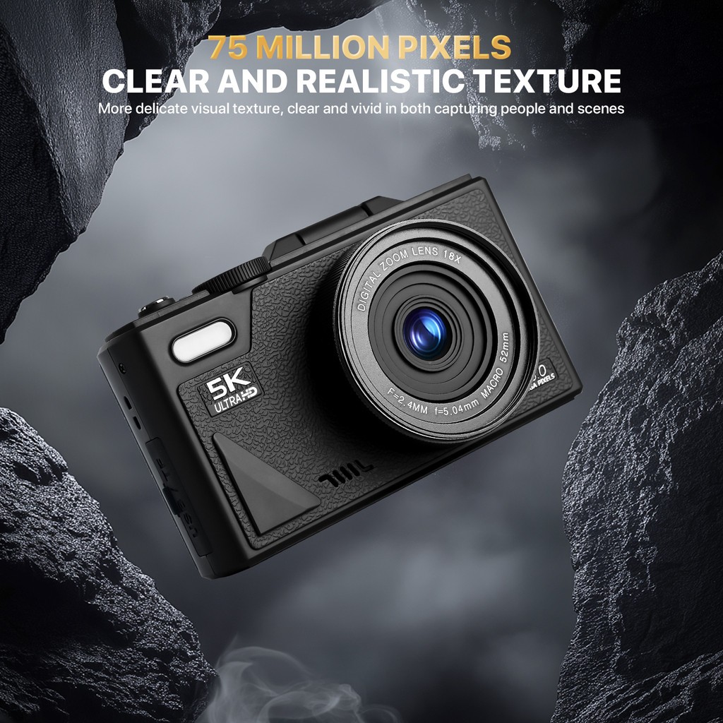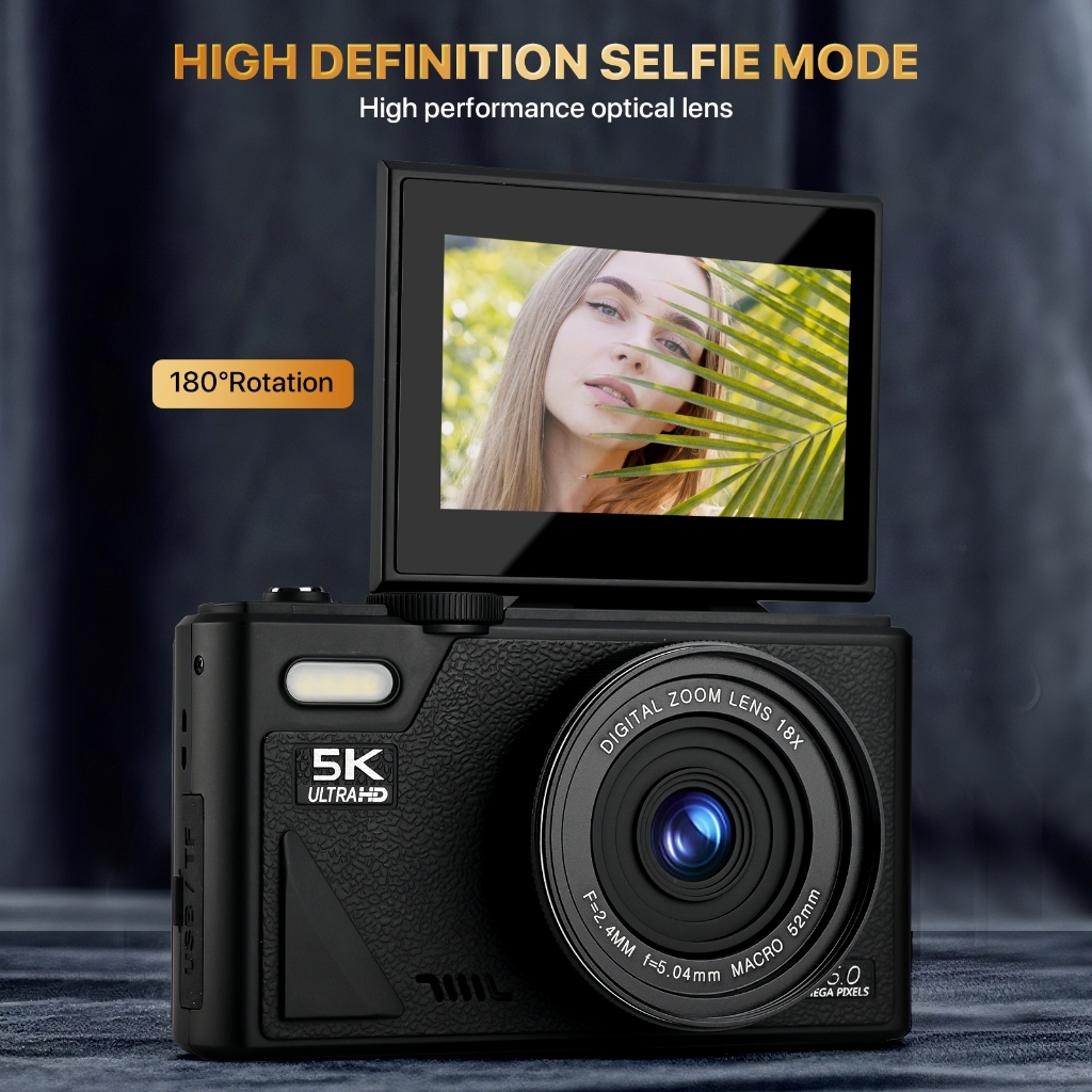 TEEKA 5K 75MP Digital Camera Flip Wifi Kamera Digital 5K 18X Digital Zoom Dengan Dukungan Selfie Koneksi WIFI
