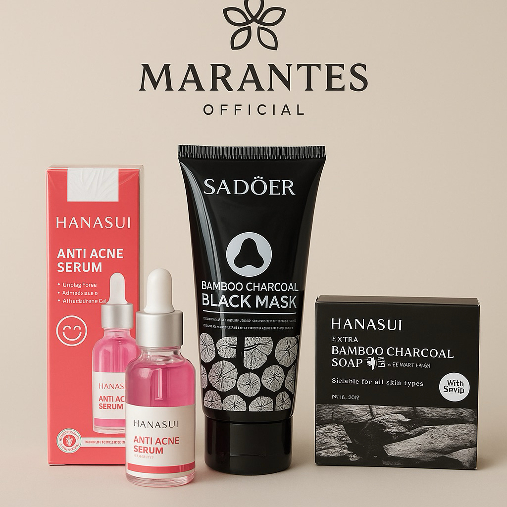 Paket Skincare 3in1: Hanasui Charcoal Soap + Sadoer Masker + Serum Hanasui Glowing