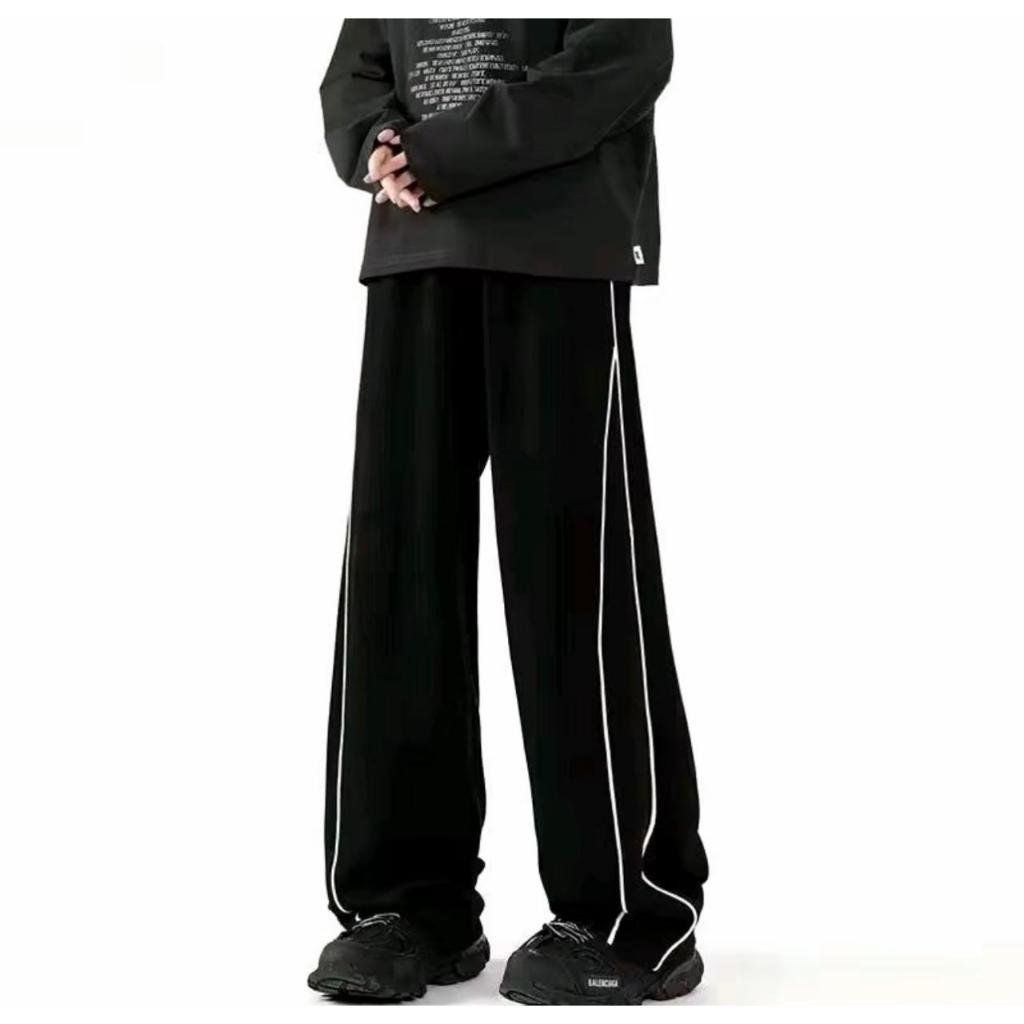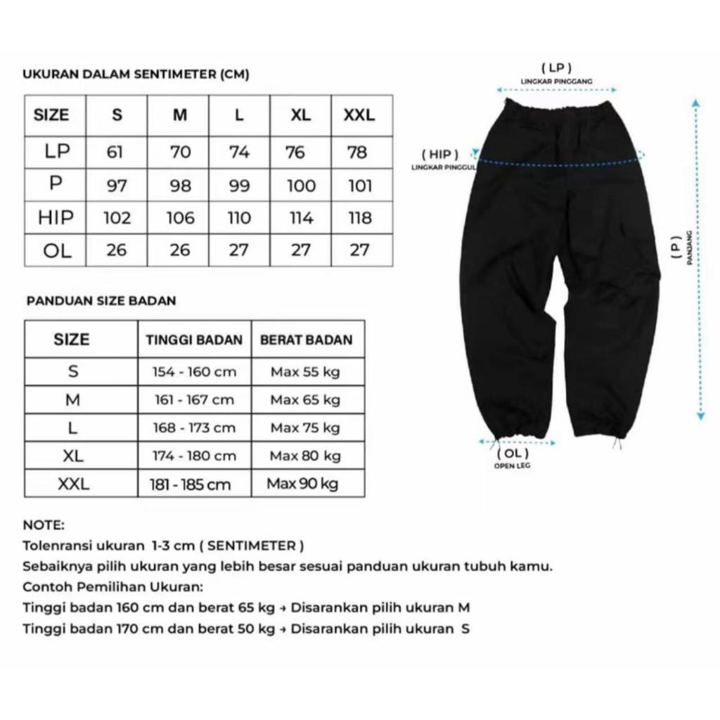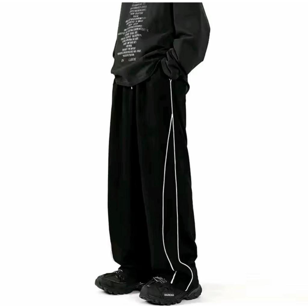 CELANA TRACKPANTS PARASUT | CELANA PARACHUTE STRIPE PANJANG LOOSE PANTS HITAM BASIC CASUAL DEWASA | CELANA CARGO TRACK P