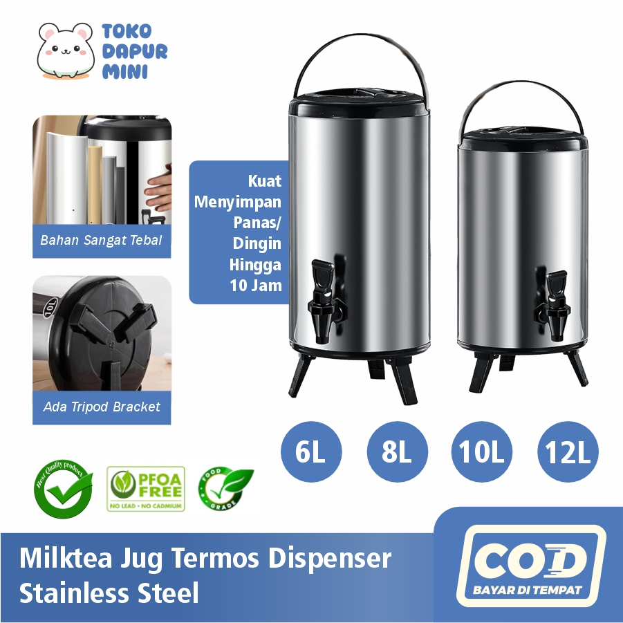 Termos Air Panas Dingin Dispenser Stainless Steel Termos Air Milk Tea Jug Bucket 6L 8L 10L 12L