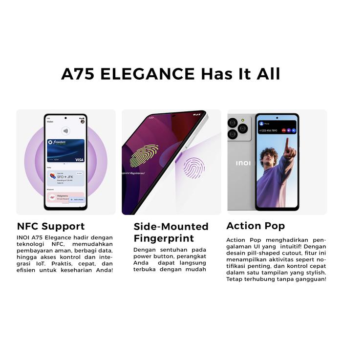 [Star]INOI A75 ELEGANCE | ROM Besar 256GB | Ram Fussion 6+6GB| Mediatek Helio G99 | 50MP Ai Camera | Garansi Resmi 777 H