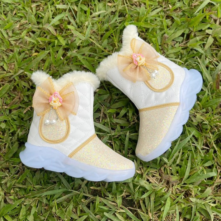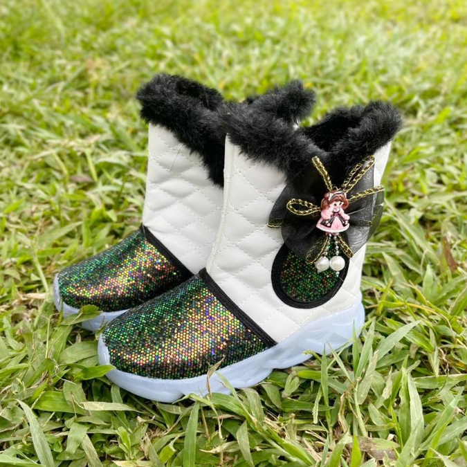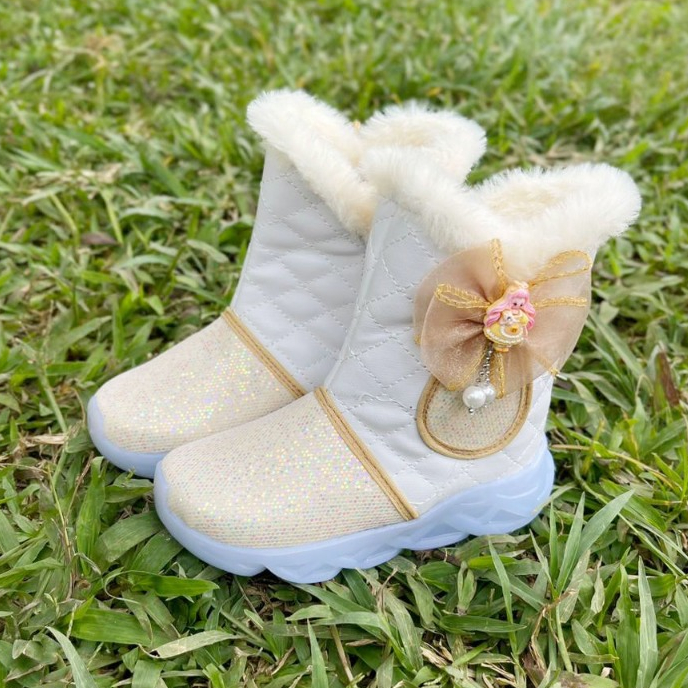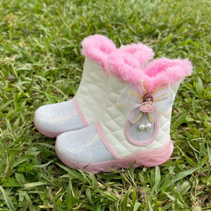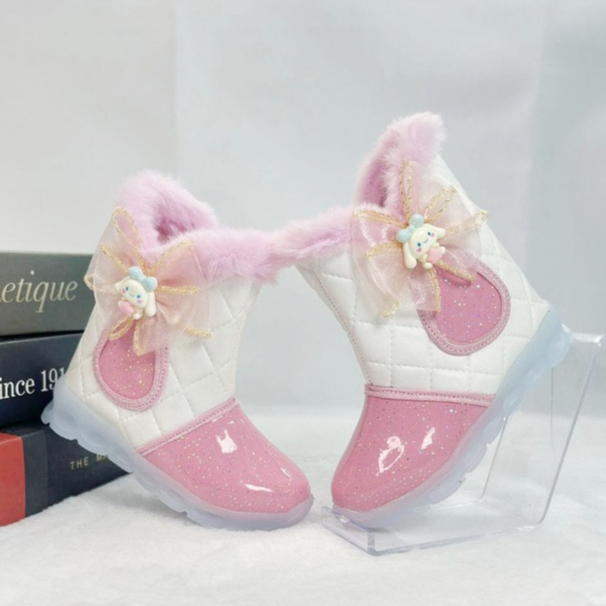 Renni - Sepatu Boots Anak Perempuan Lucu Model Terbaru 2025 Motif Bulu Pita Kartun IB05