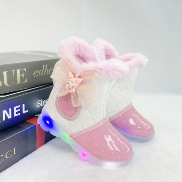 Renni - Sepatu Boots LED Anak Perempuan Pita Boneka / Sepatu Anak MENYALA IBLED03