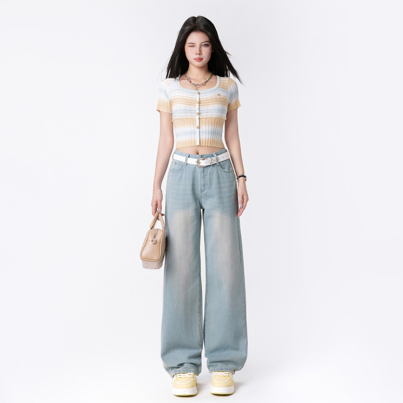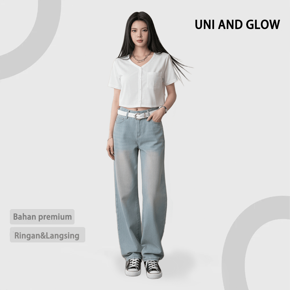UNI AND GLOW Rhea Pants | Celana Mom Jeans dengan Karet Belakang High-Waist Wanita –Biru Cuci– 26–38