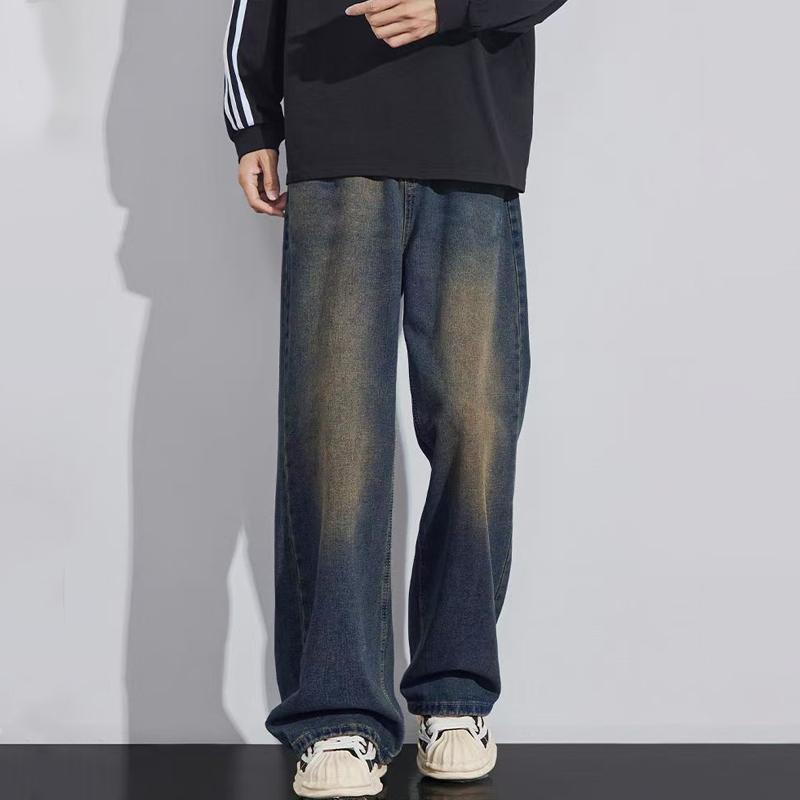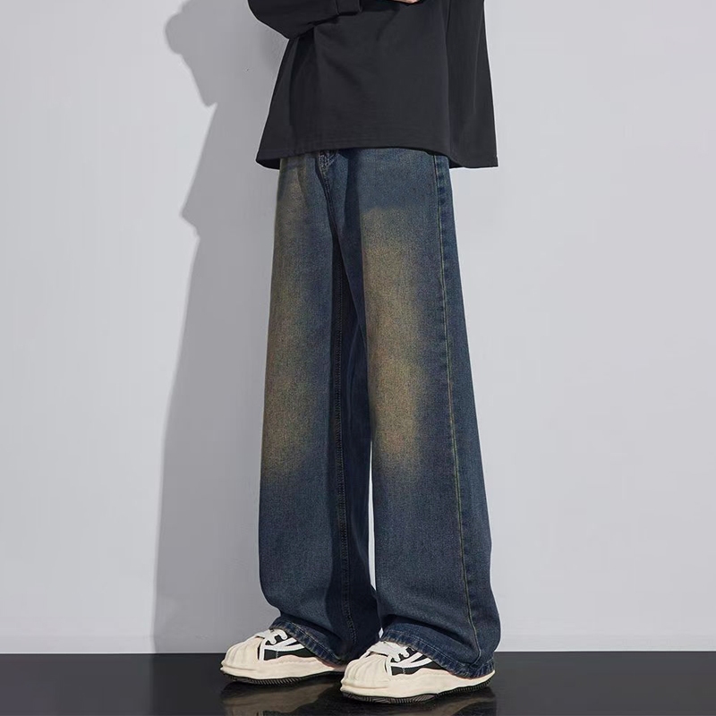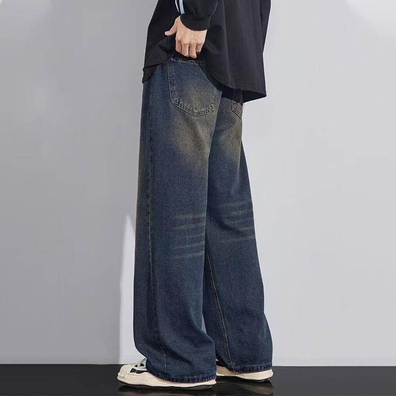 KeyBoy celana jeans pria panjang baggy retro straight kulot pants celana casual fashion gombrang vintage denim pants kor