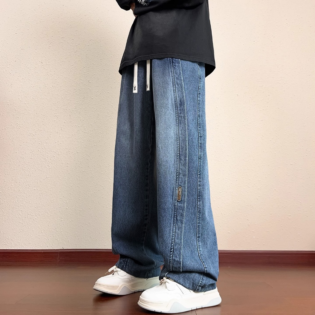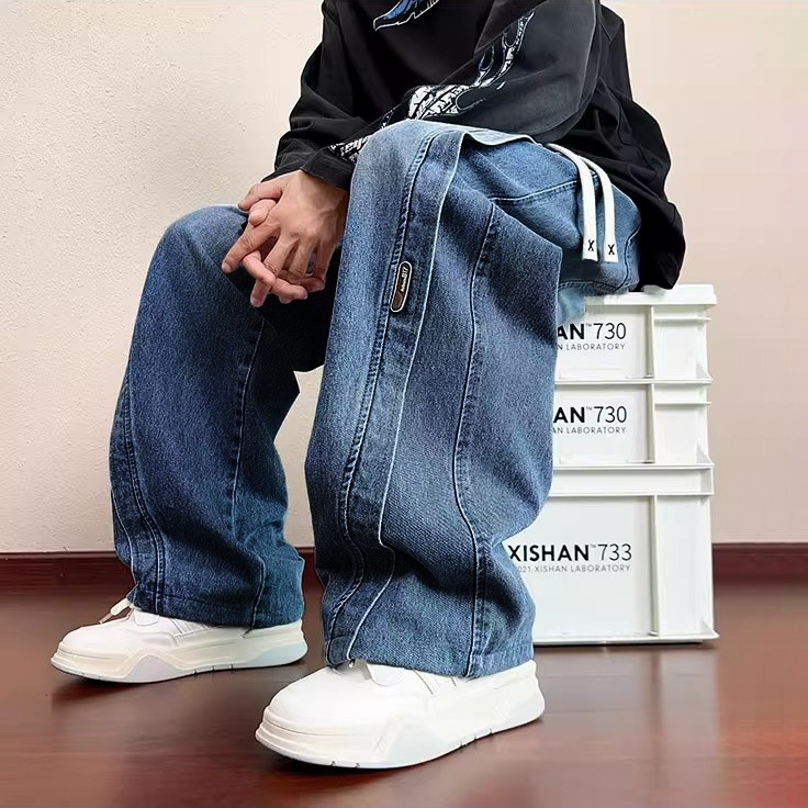 KeyBoy celana baggy pria panjang kulot jeans celana cowok dewasa casual pinggang karet denim pants korean style