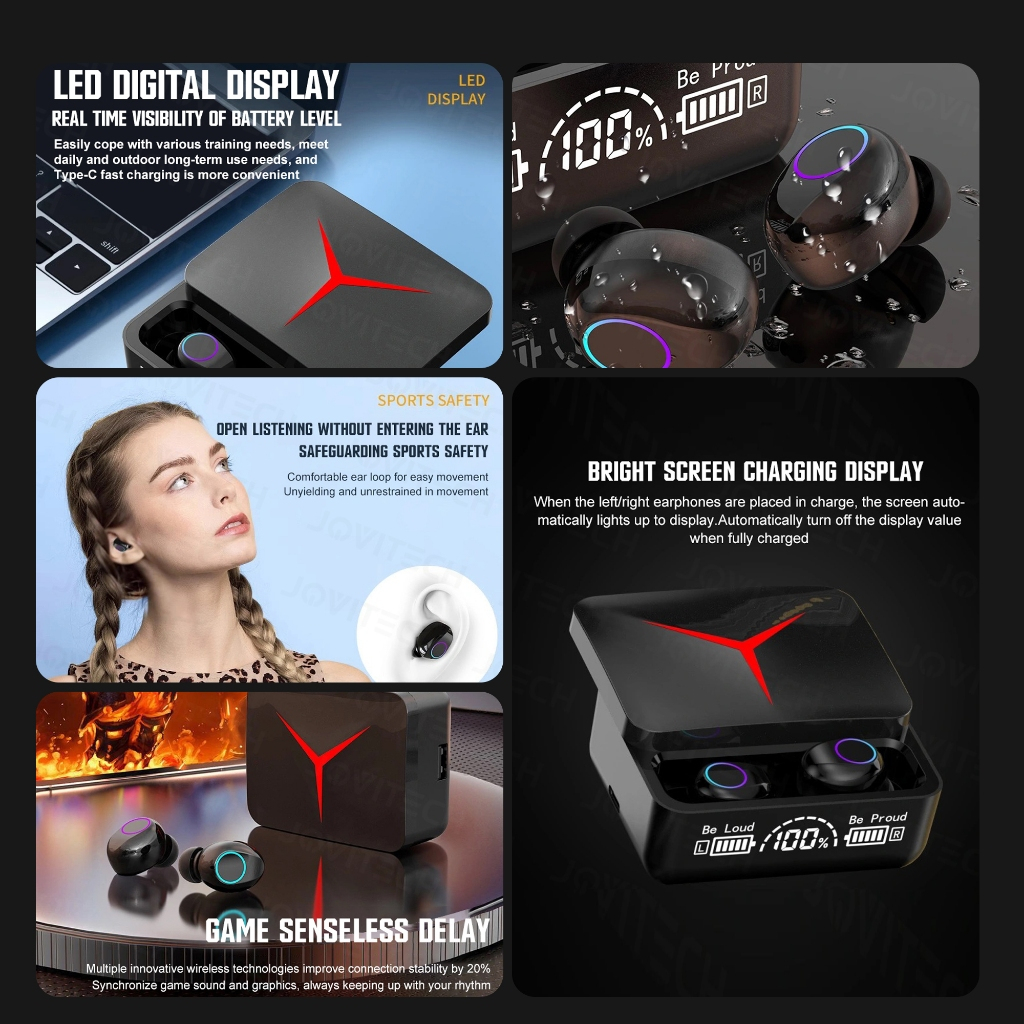Jovitech TWS M90 Pro Earphone Low Latency Gaming Wireless Bluetooth Headset HIFI Stereo Sound Music With LED Digital Dis