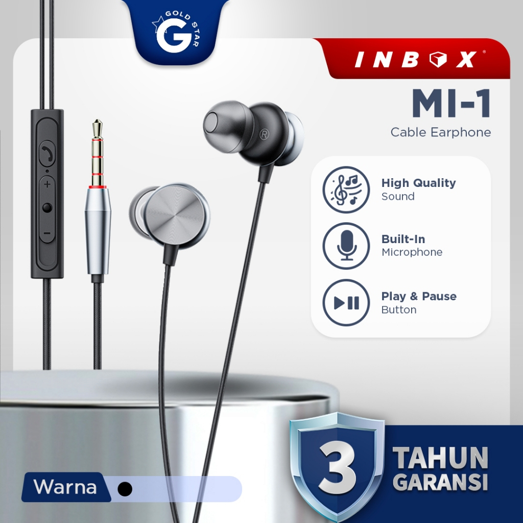 Headset Inbox MI 1 Super Bass Noise Canceling Earphone Build in Mic GARANSI 3 TAHUN