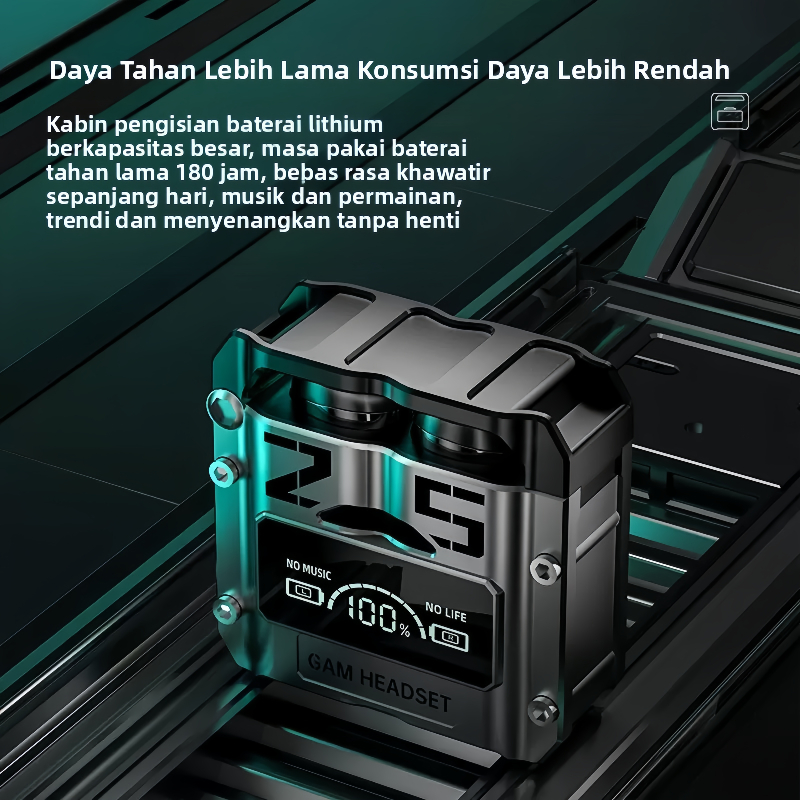 RCCOR Earphone Bluetooth Headset Anti Drop 48H Charger Case Bisa Isi HPDesain Gamer Futuristik