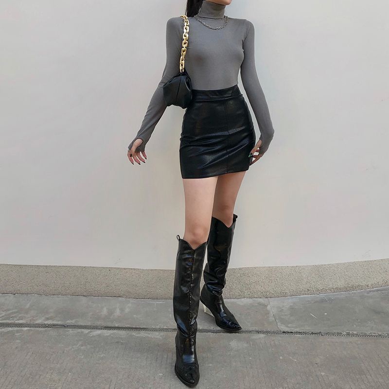 Rok Wanita Mini Fitted Skirt Leather Rok Fashion Korean Style