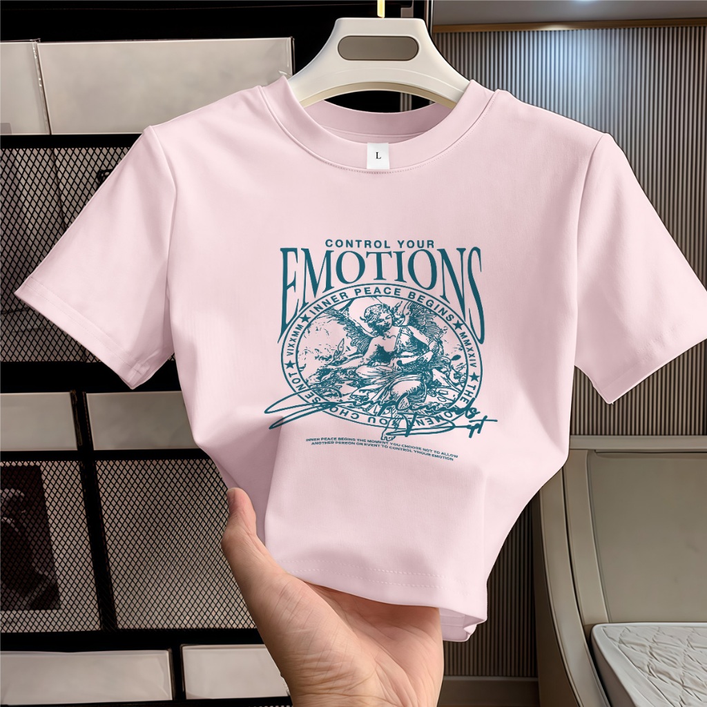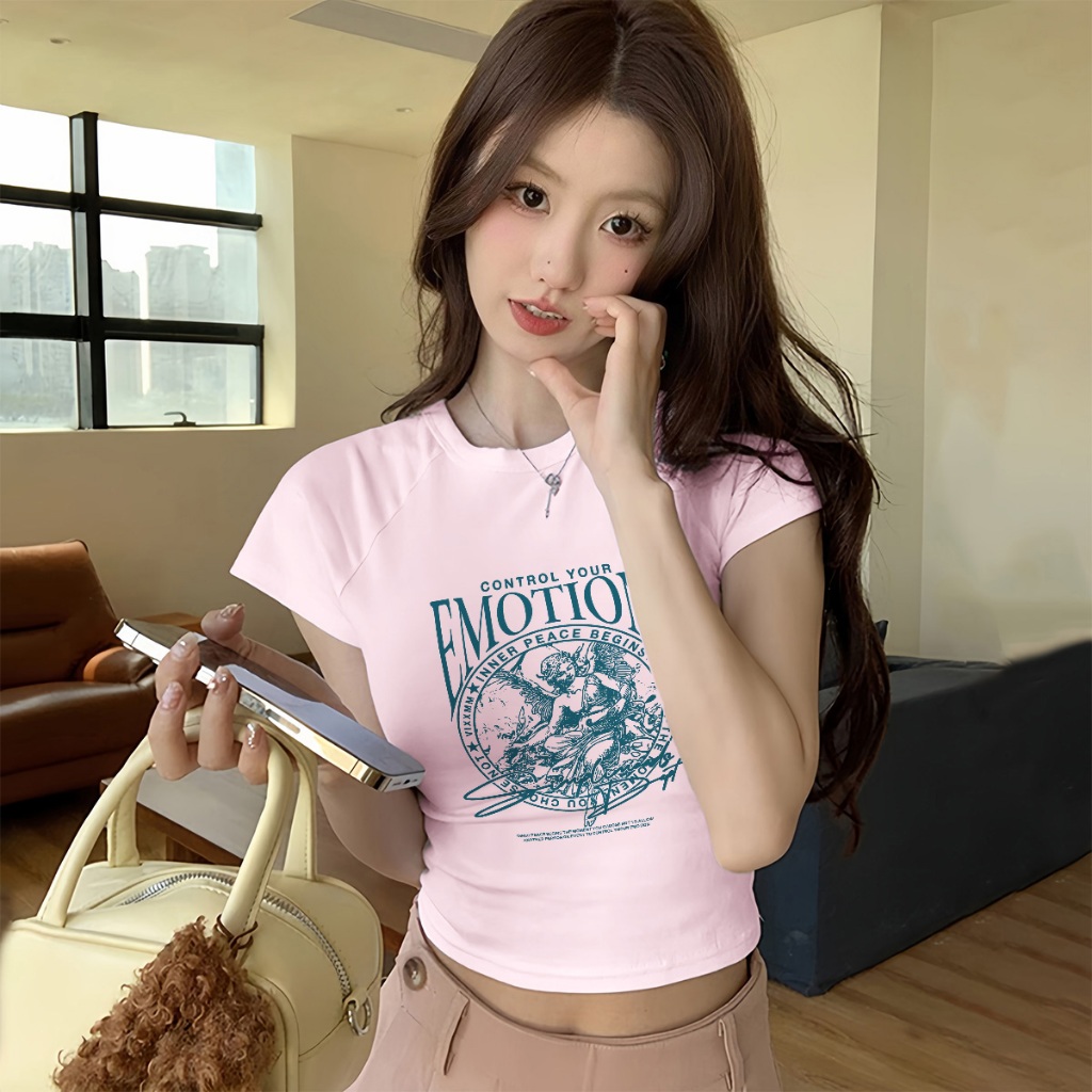 LYBH Baju Pendek Wanita Crop Top Ketat Putih Polos Wanita Korea Avatar Of The Goddess Print Street Style Baju Basic Crop