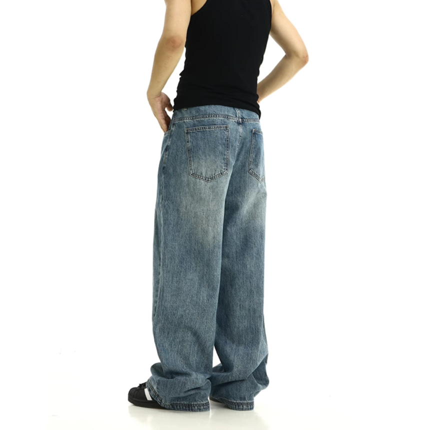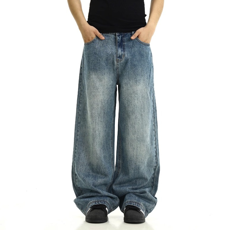 X-gent Celana Panjang Gombrong Jeans Pria Baggy Staight KoreanStyle Biru RETRO Cowok-Denim Pants-Loose Fit
