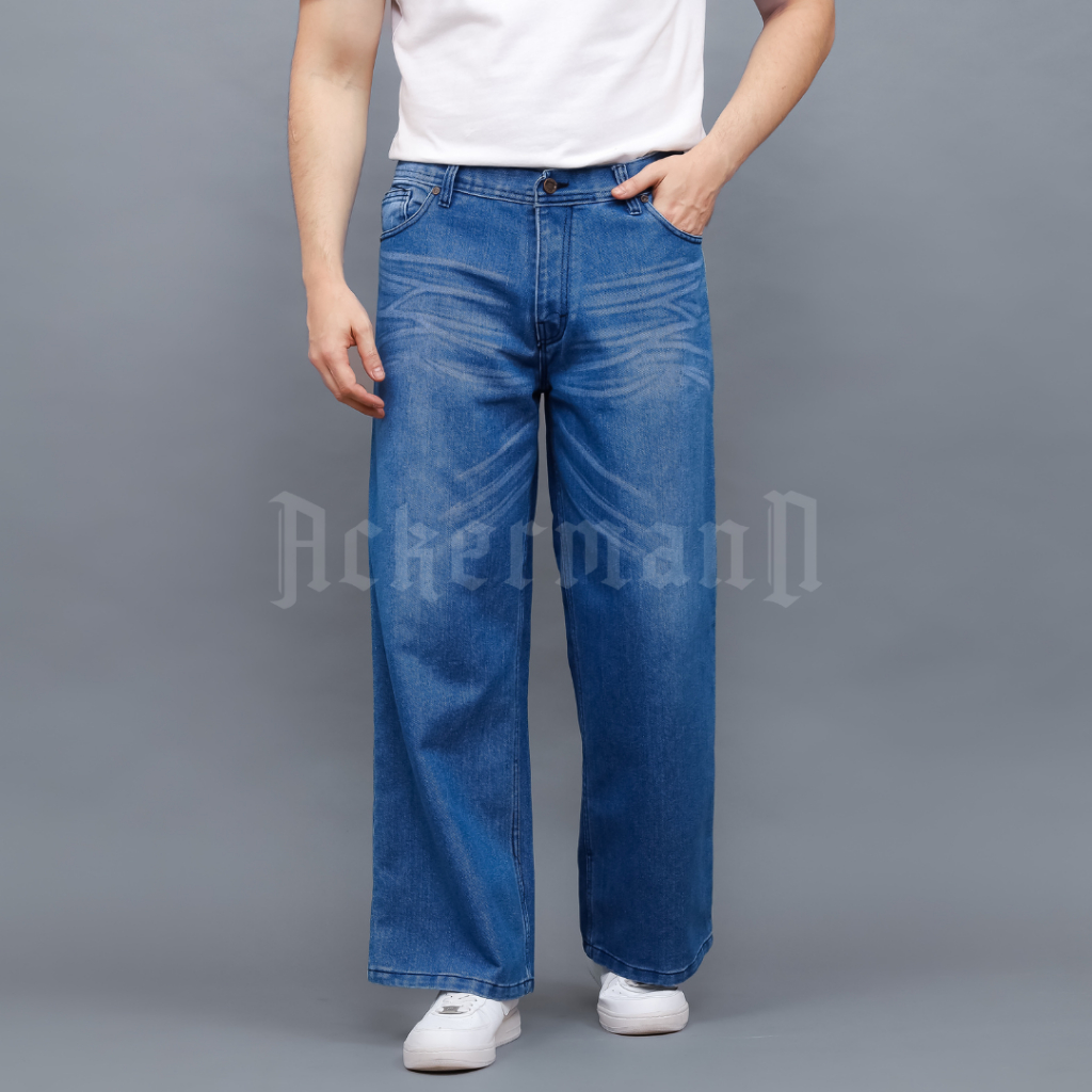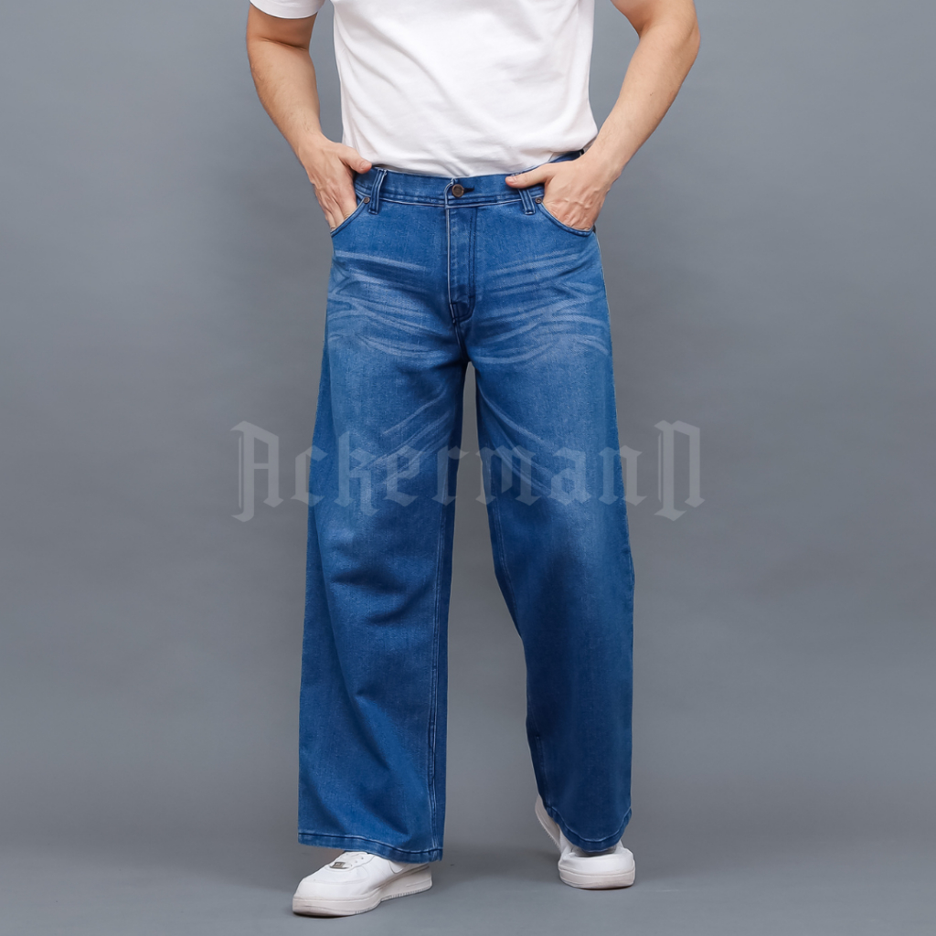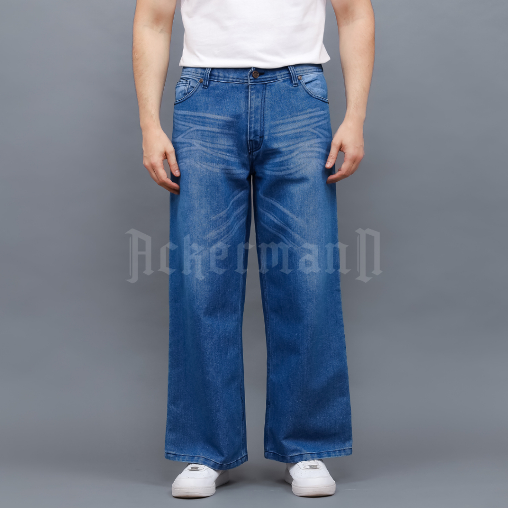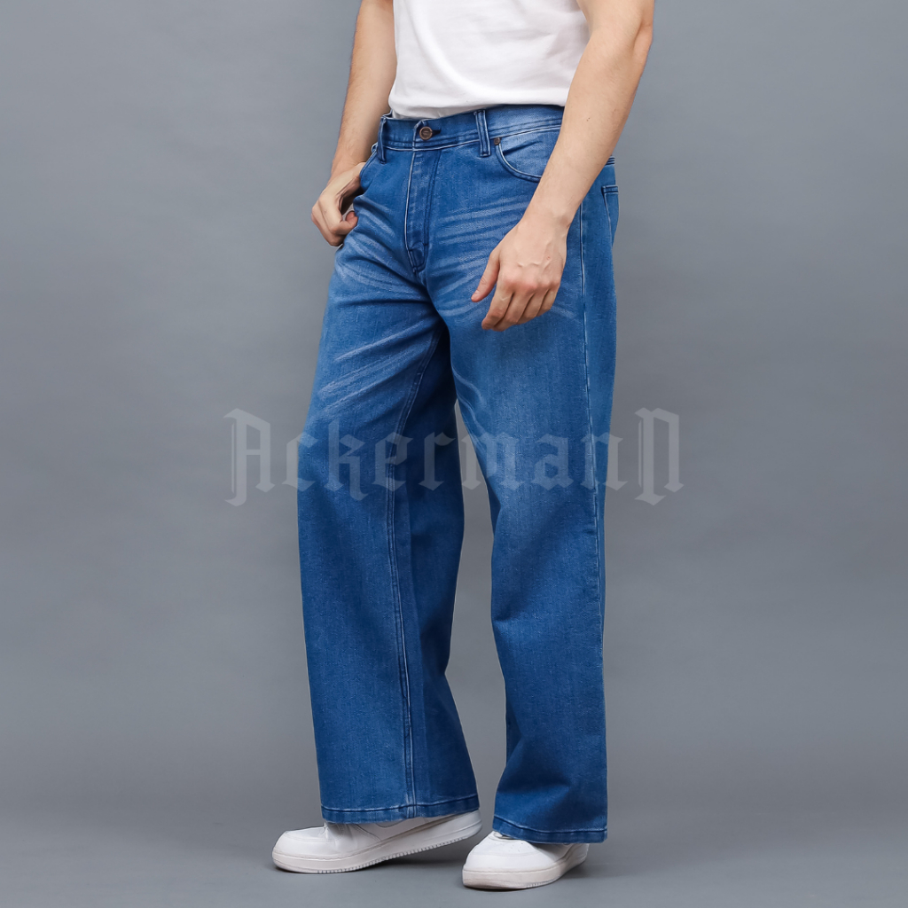 Ackermann - Loose Jeans Pria Celana Jeans Denim Baggy style Light Blue Kasual Premium