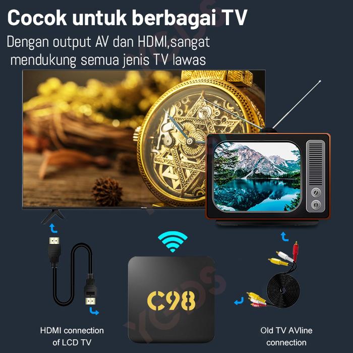 C98 ANDROID TV BOX ANDROID 13.0 OS BLUETOOTH SMART TV BOX 5G WIFI TV BOX 4K ULTRA HD STB NETFLIX YOUTUBE GOOGLE VOICE ALL CHANNELS AVAILABLE - ️4G+32G️