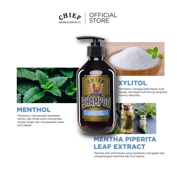 CHIEF SHAMPOO DANDRUFF ELIMINATOR 400 ML – KETOMBE BERKURANG DALAM 7 HARI DAN MAKSIMAL MEMBERSIHKAN KULIT KEPALA – MENTHOL & PEPPERMINT EXTRACT – SHAMPOO ANTI‑KETOMBE