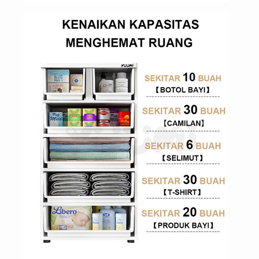 Yuumi Loker Plastik Jumbo Lemari Plastik susun Lemari baju anak Pakaian Laci Plastik Kabinet Drawer Storage Cabinet bayi