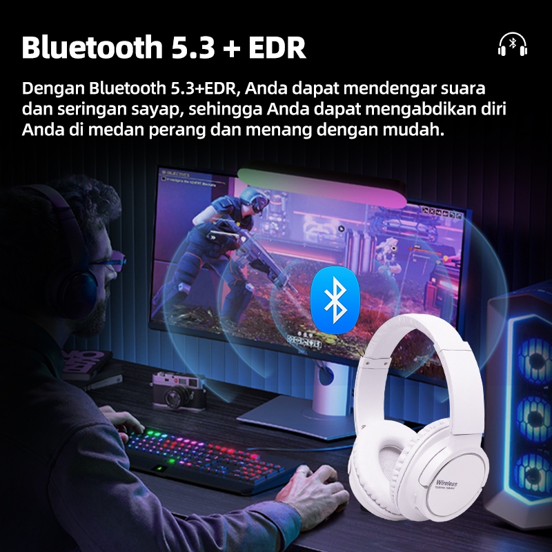 ASTON Headphone Wireless Music Gaming AT TW159 Bluetooth Super Bass Hifi Stereo kartu TF Original