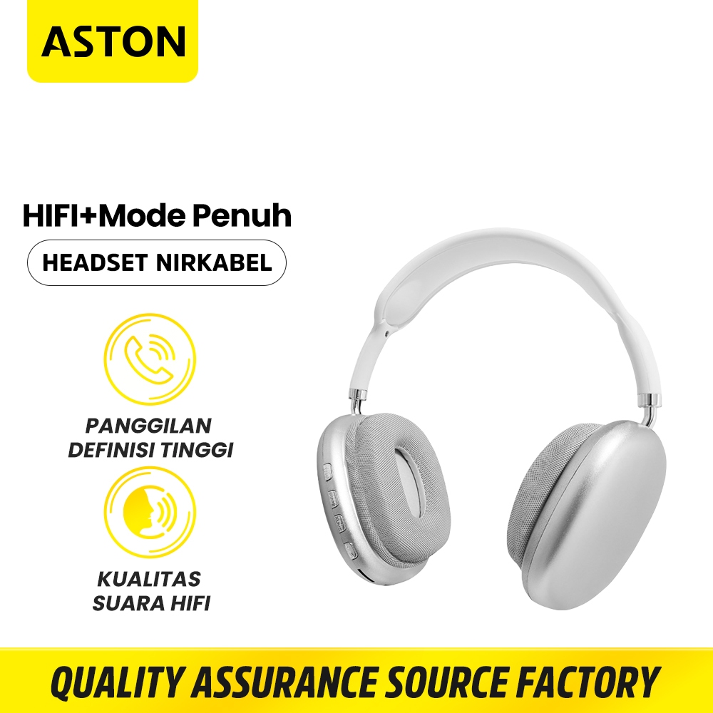 ASTON Headphone Bluetooth Wireless AT TW146 Silver Super Bass Hifi Stereo Earphone Original