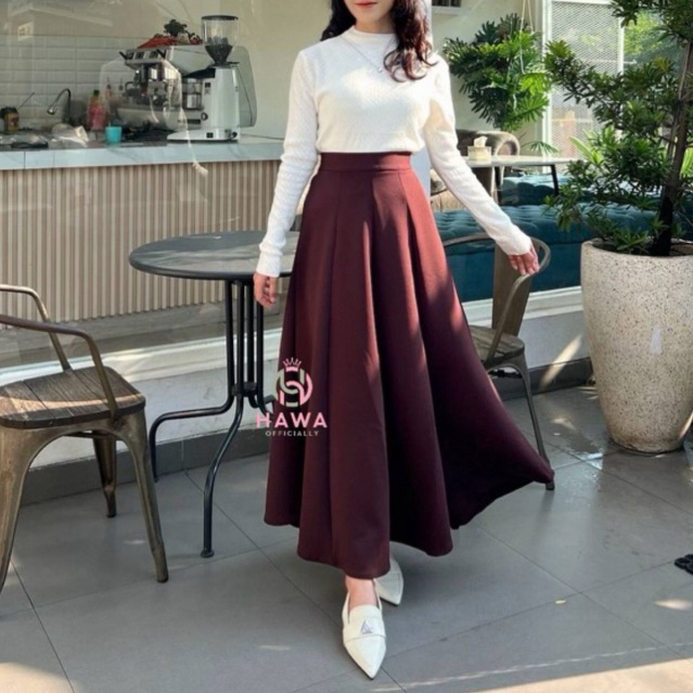 Audy Skirt - Haruka skirt Korean Loose Maxi Skirt Rok Wanita Anti Kusut - Rok Flare Wanita - Rok Basic Polos - Maxi Skir