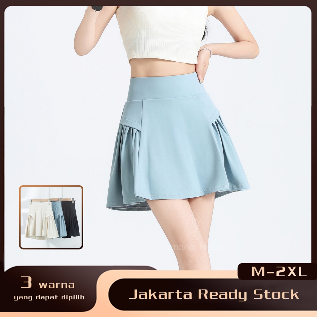 【Amanoheart】Ready Stock Rok berlipit impor Rok Tenis Badminton Celana skirt wanita Dua lapis pinggang tinggi gym tennis