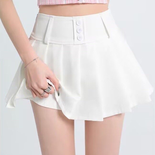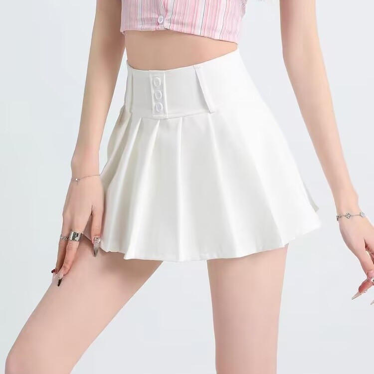 Rok pendek hitam wanita gaya Korea rok lipit seksi pinggang tinggi rok pendek A-line