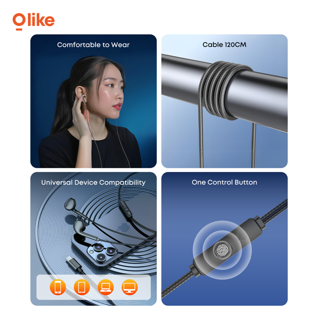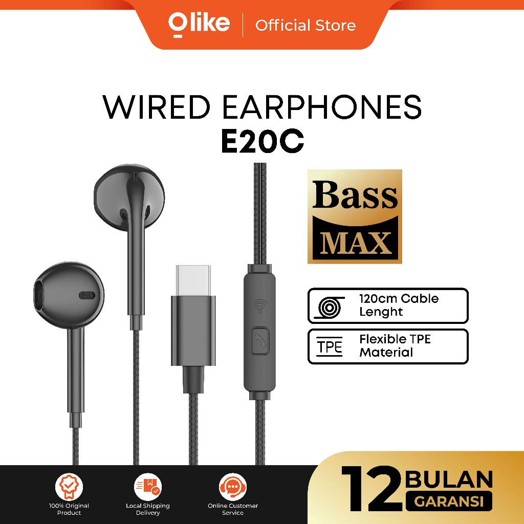 OLIKE Headset Cable E20C Type C 14mm Driver Wired Earphone Stereo Bass Max Durable TPE Material Half Ear Kabel With HD A
