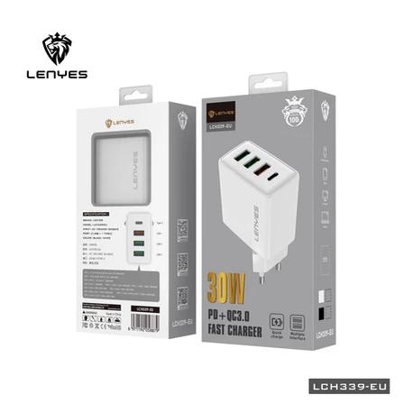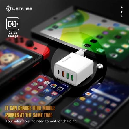 LENYES ADAPTOR BATOK CHARGER 4IN1 18W 30W 3 USB + 1 USB C QC 3.0 IC PROTECTOR SAFETY ORIGINAL LCH339