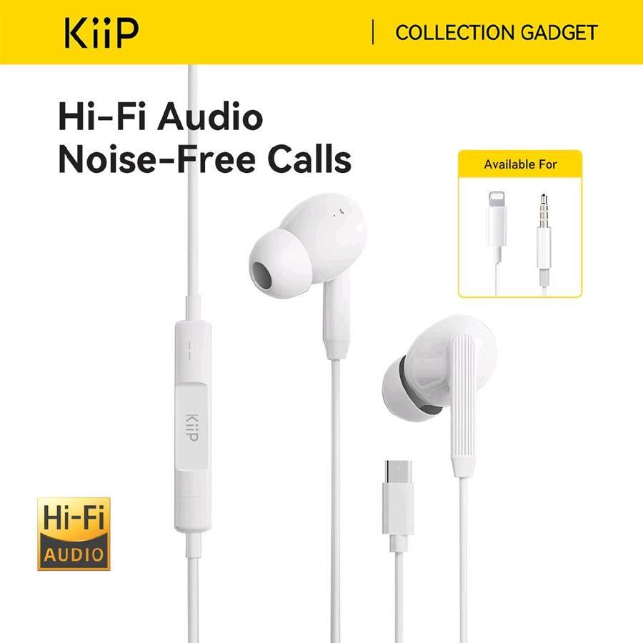 KIIP IE Wired Earphone Headset Kabel 110cm Aux 3 5mm TYPE C Lightning Jack Audio With Mic in Ear