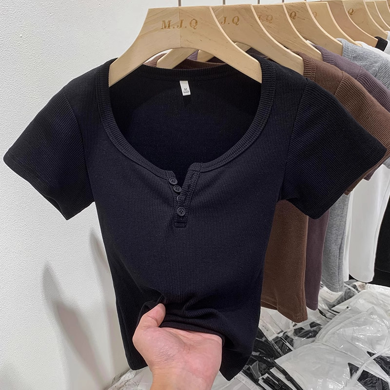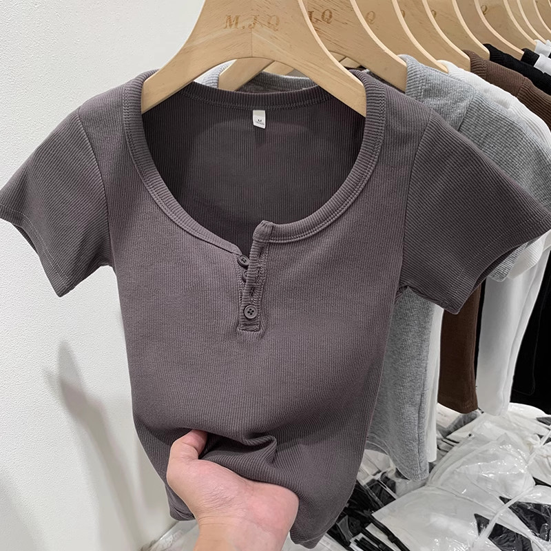 Kaos Crop Berwarna Coklat Berkualitas/Crop Top Korea