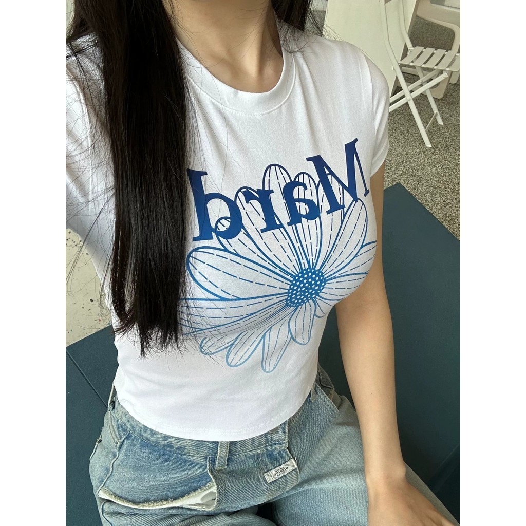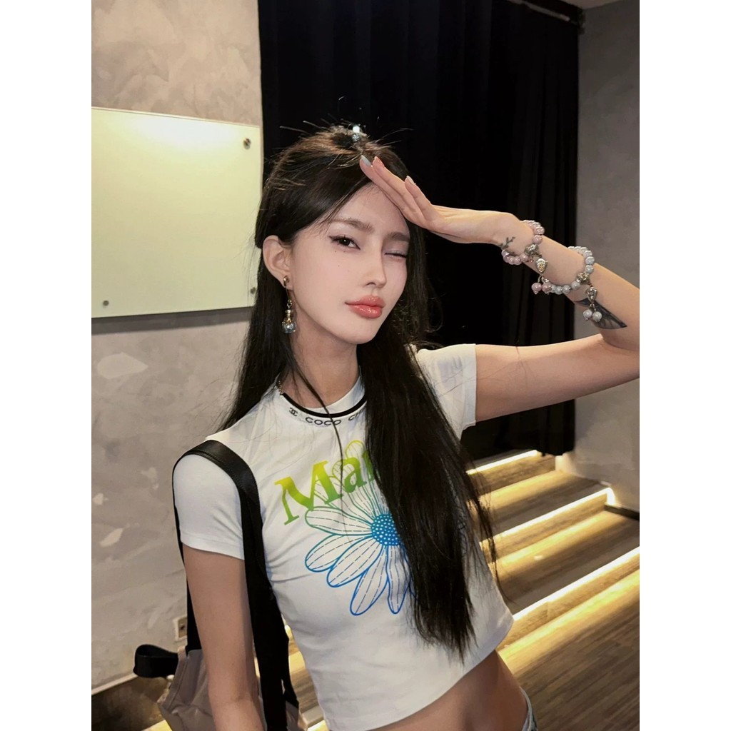 ✅】crop top wanita, Gaya Gadis Remaja, Model Crop dan Ramping, Gaya Korea, Leher Bundar,Sederhana dan perasaan