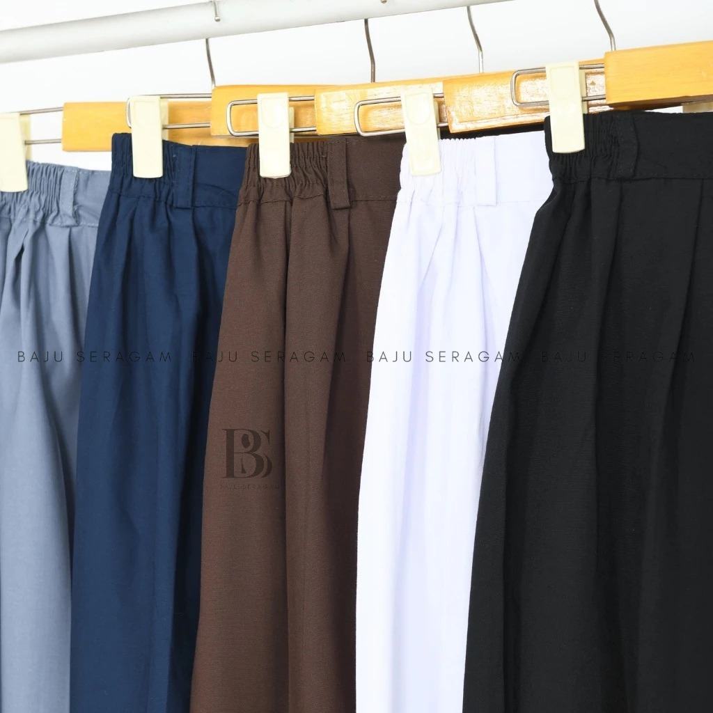 Baju Seragam Rok Panjang Rempel SMP SMA Rok Abu Biru Coklat Hitam Putih Bahan Katun Drill Premium