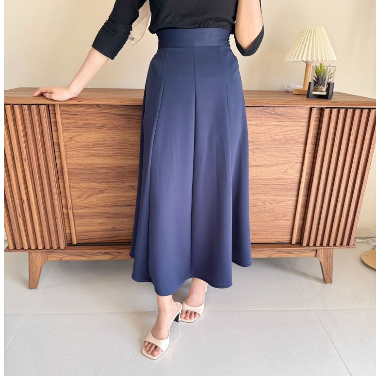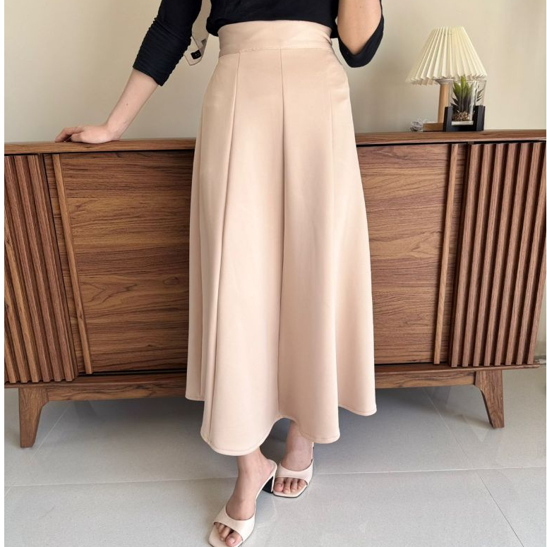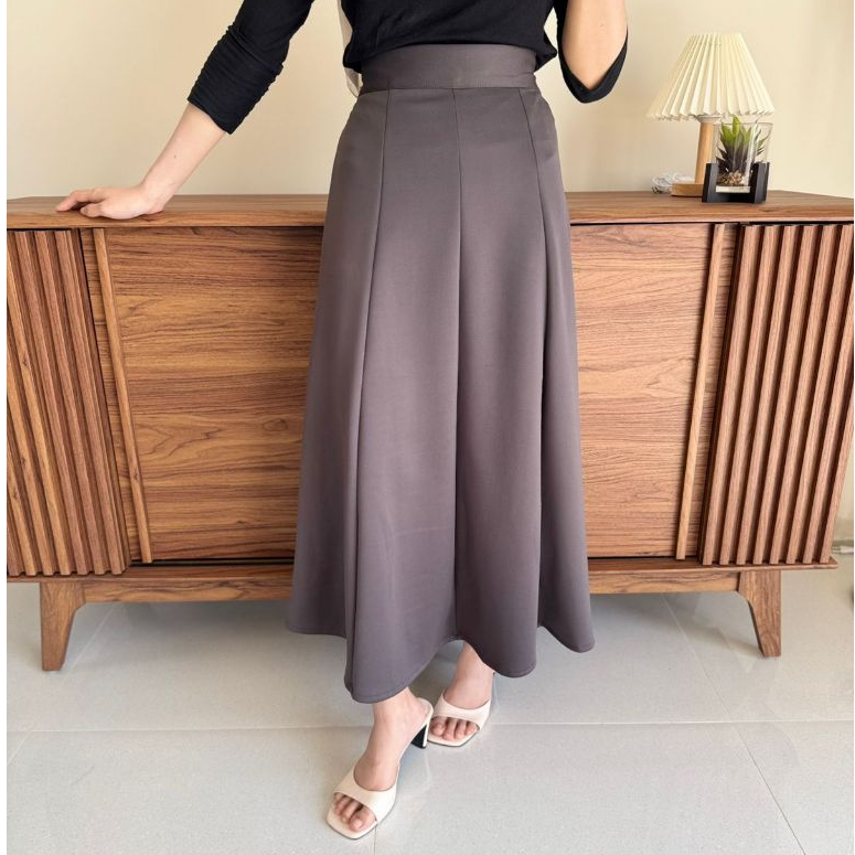 Haruka Skirt - Korean Loose Maxi Skirt Rok Wanita Anti Kusut Polyester - Rok Flare Wanita - Rok Basik Polos - Maxi Skirt