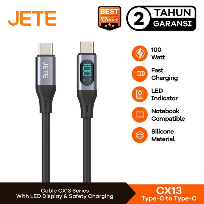 JETE CX13 TYPE C TO C KABEL CHARGER 100W LED INDICATOR FOR HP & LAPTOP