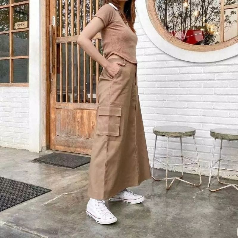 Kiki Rok Cargo Twill Combed Wanita Rok Caego Jumbo