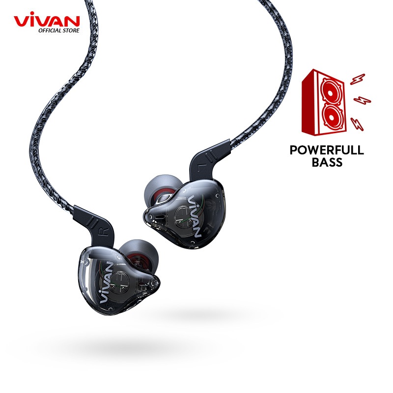 VIVAN Earphone In Ear Kabel Stereo Powerfull Bass Wired Headset Q15 Black Resmi 1 Tahun