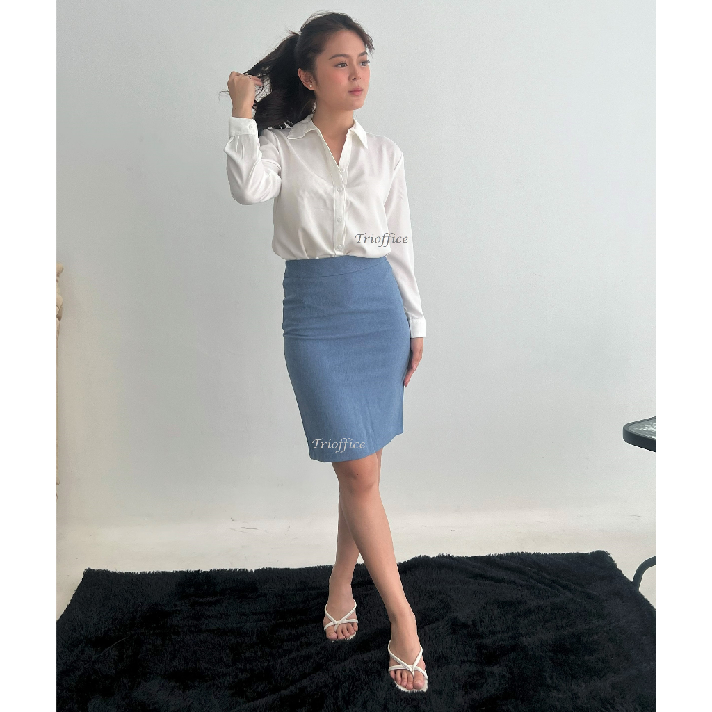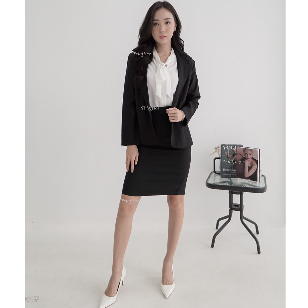 Rok Span Hitam Kerja Formal Pendek Selutut 3/4