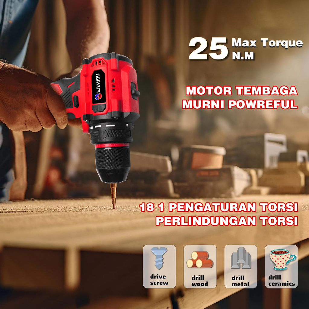 FUYAON Bor Listrik Motor Tanpa Sikat 2-In-1, Bor Listrik 16.8V Motor Tanpa Sikat Daya Tahan Super Bor Listrik Murah