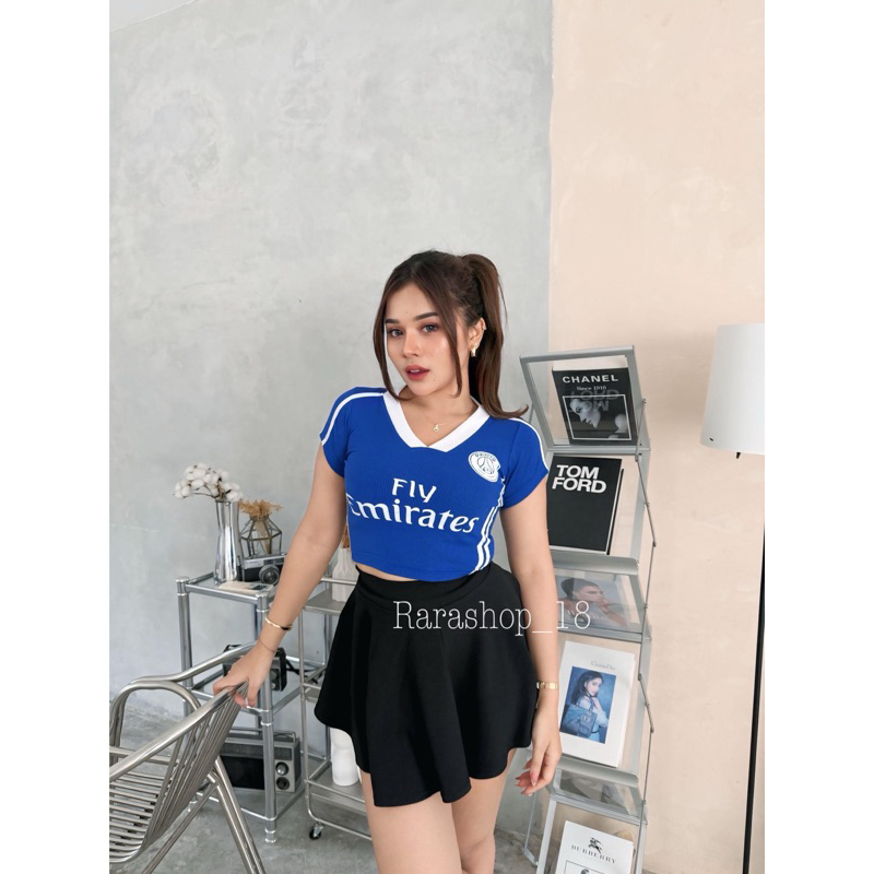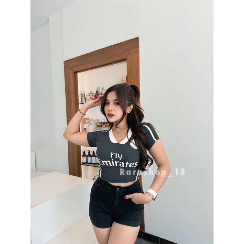Croptop Emelly Rib V Jersey Atasan Wanita Katun Print