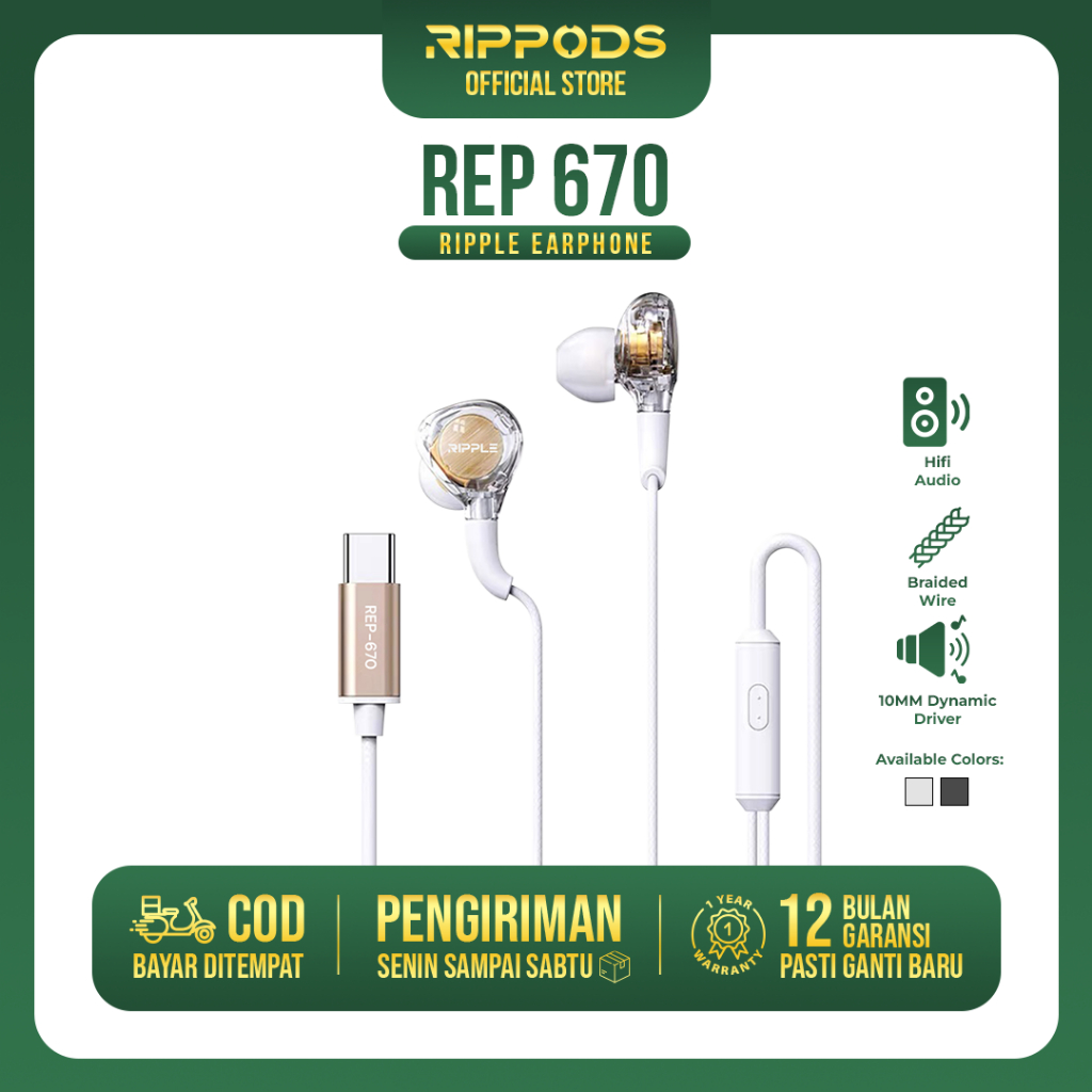 Rippods REP 670 3 5mm lightning type c Wired Earphone Headset Kabel Handsfree