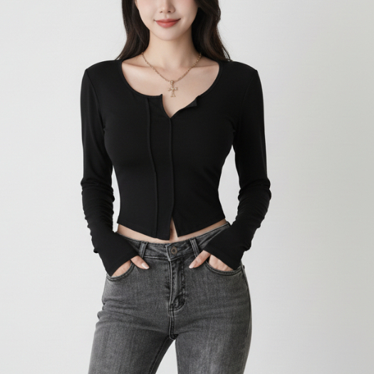 99kOUTLET Women Crop Top V-Neck Long Sleeve Slim Fit Long Sleeve 1820 (S/M/L)