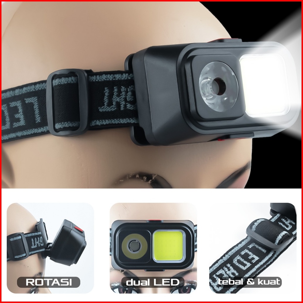 Suksestech Headlamp Led Senter Cas Kepala Dual Led 4 Mode Headlight Outdoor D-212