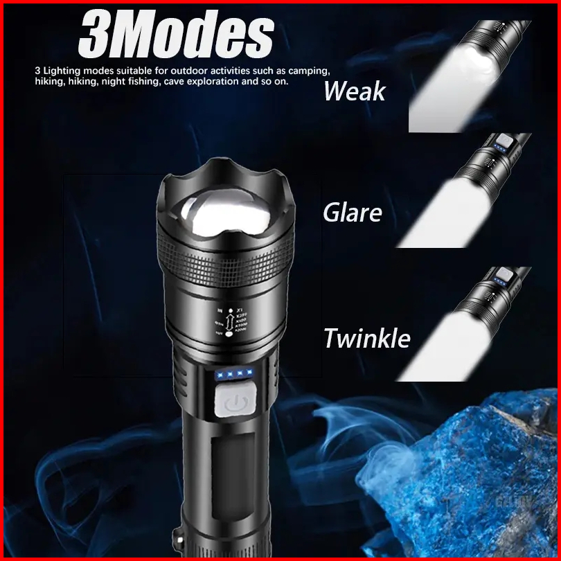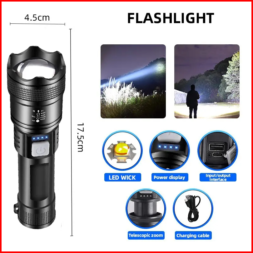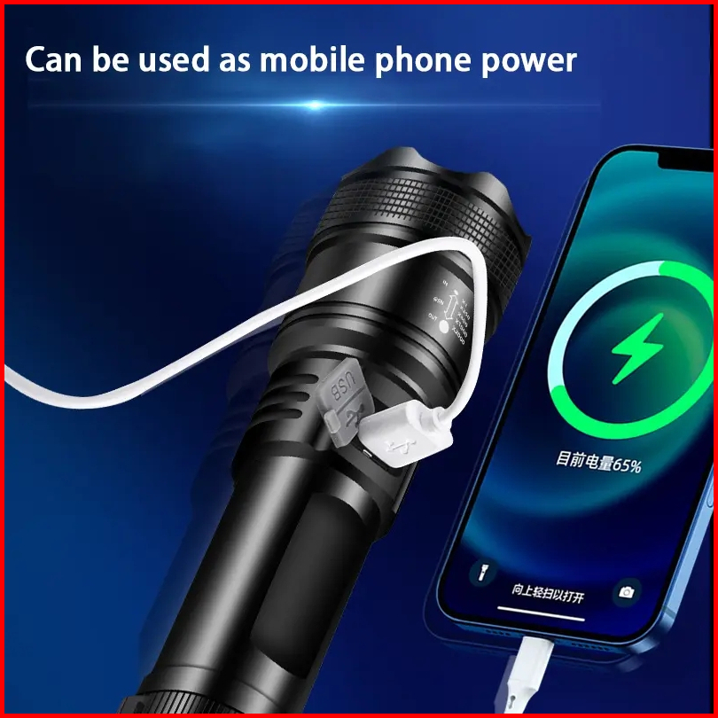 Senter Zoom Teleskopik Multifungsi Lampu Terang Luar Ruangan Led Pengisian Daya Portabel Bekerja Senter Kecerahan Tinggi