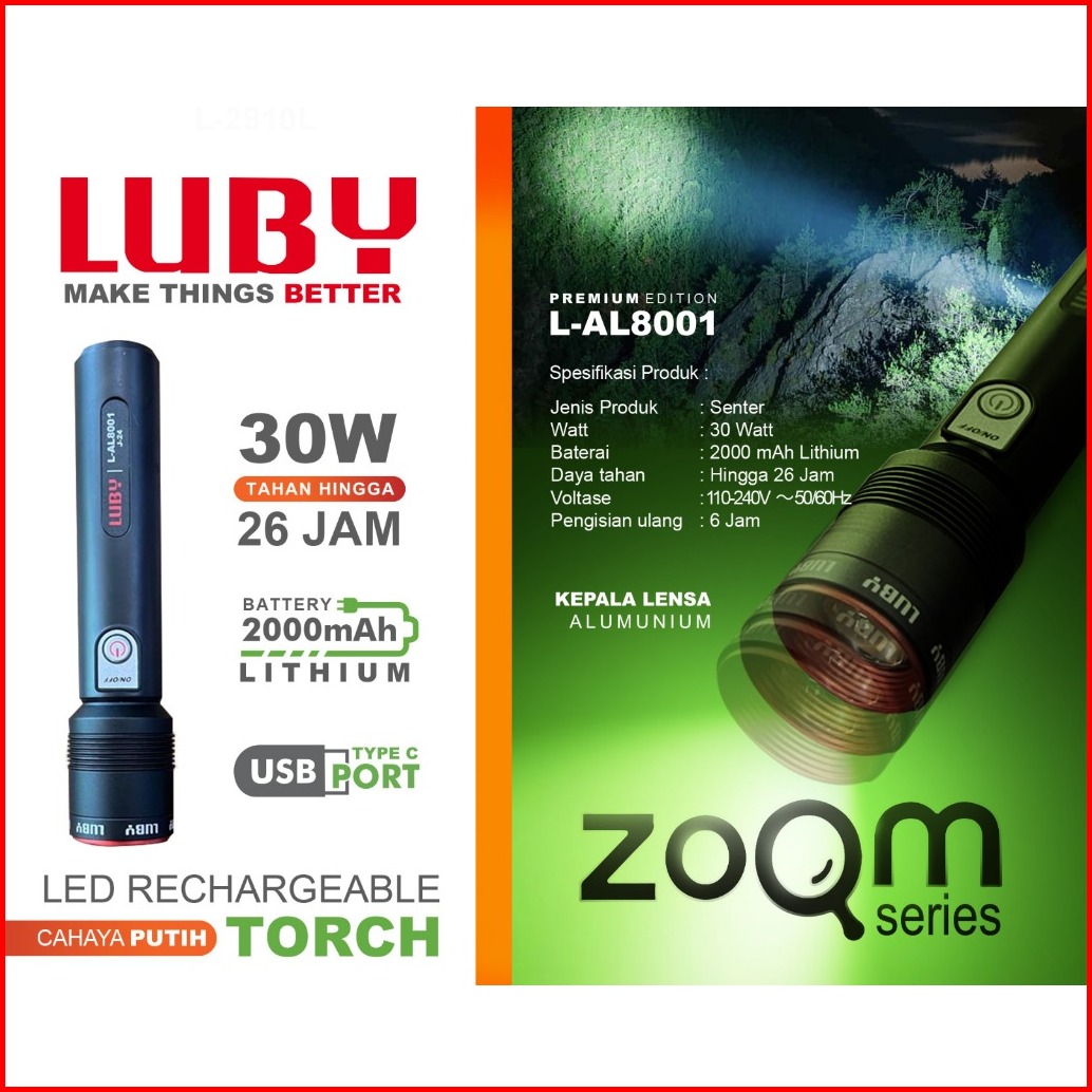 Luby Senter Tangan Led Zoom Series Led Rechargeable Torch - Cahaya Putih