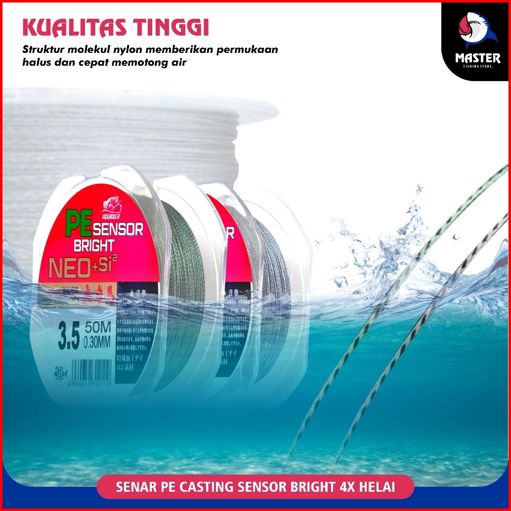 Mfs - Tali Pancing 50m 100m Senar Pancing Pe Sensor Bright Neo Si2 Warna Abu-abu Hijau Bahan Pe