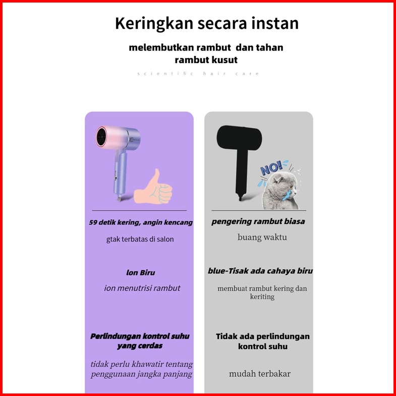 Canel Co Pengering Rambut Lipat Penata Rambut Salon Kecantikan Rambut Ion Negatif Pengering Rambut Mini Hair Dryer