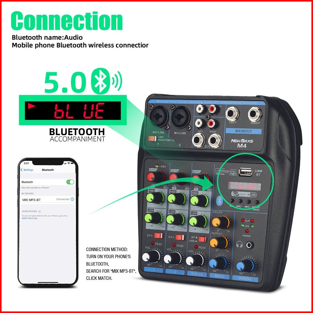 New Baxs M4 Audio Mixer Mini Professional 4 Channel Equalizer Support Bluetooth Usb Pc Mp3 Playback Support For In-vehic